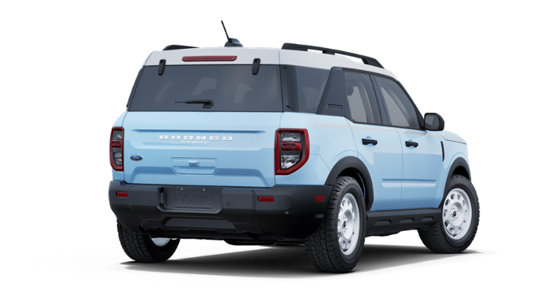 Robins Egg Blue 2025 Ford Bronco Sport Heritage 1.5L EcoBoost 4WD 8-Speed Automatic 25/30 City/Highway MPG 2025 Ford Bronco Sport Heritage in Robins Egg Blue vehicle highlights include, Bronco Sport Heritage, 4D Sport Utility, 1.5L EcoBoost, 8-Speed Automatic, 4WD, Robins Egg Blue, Navy Pier w/Plaid Cloth Front Bucket Seats, 4-Wheel Disc Brakes, 6 Speakers, ABS brakes, Air Conditioning, AM/FM radio: SiriusXM, AM/FM Stereo, Auto High-beam Headlights, Automatic temperature control, Brake assist, Compass, Delay-off headlights, Driver door bin, Electronic Stability Control, Emergency communication system: SYNC 4 911 Assist, Equipment Group 250A, Four wheel independent suspension, Front & Rear Floor Liners w/o Carpet Mats, Front anti-roll bar, Front Bucket Seats, Front Center Armrest, Front Driver/Passenger Seat Back Map Pockets, Fully automatic headlights, Heated door mirrors, Illuminated entry, Low tire pressure warning, Outside temperature display, Overhead console, Panic alarm, Passenger door bin, Plaid Cloth Front Bucket Seats, Power door mirrors, Power windows, Radio data system, Rear anti-roll bar, Rear Parking Sensors, Rear seat center armrest, Rear window defroster, Rear window wiper, Remote keyless entry, Security system, SiriusXM, Speed control, Speed-sensing steering, Speed-Sensitive Wipers, Split folding rear seat, Steering wheel mounted audio controls, SYNC 4 w/Enhanced Voice Recognition, Tachometer, Telescoping steering wheel, Tilt steering wheel, Traction control, Trip computer, Variably intermittent wipers, Wheels: 17 Oxford White-Painted Aluminum.