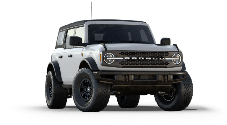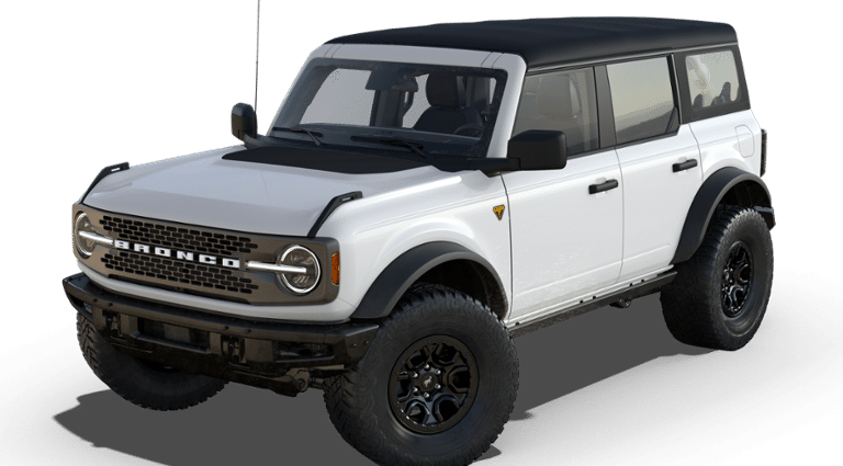 Oxford White 2025 Ford Bronco Badlands 2.7L EcoBoost V6 4WD 10-Speed Automatic 2025 Ford Bronco Badlands in Oxford White vehicle highlights include, HARD TOP, BLACK-PAINTED, Bronco Badlands, 4D Sport Utility, 2.7L EcoBoost V6, 10-Speed Automatic, 4WD, Oxford White, Black Onyx w/Leather-Trimmed/Vinyl Bucket Seats or Leather-Trimmed/Vinyl Bucket Seats w/Blue/Black, 4-Wheel Disc Brakes, 4.7 Final Drive Ratio, 7 Speakers, ABS brakes, Air Conditioning, AM/FM radio: SiriusXM with 360L, AM/FM Stereo, Auto High-beam Headlights, Auto-dimming Rear-View mirror, Black Appearance Package, Black Molded-In-Color Door Handles, Black Molded-In-Color Fender Flares, Black Molded-In-Color Sideview Mirror Caps, Black-Painted Molded-In-Color Grille, Brake assist, Compass, Connected Navigation, Delay-off headlights, Driver door bin, Electronic Stability Control, Emergency communication system: 911 Assist, Equipment Group 332A Mid Package, Exterior Parking Camera Rear, Ford Performance Heavy-Duty Modular Front Bumper, Front & Rear Floor Liners, Front anti-roll bar, Front Bucket Seats, Front Center Armrest, Front fog lights, Front License Plate Bracket, Front wheel independent suspension, Fully automatic headlights, Hard Top Sound Deadening Headliner, Heated door mirrors, Heated front seats, Heated steering wheel, High Clearance Fender Flares, High Clearance Suspension, Illuminated entry, Integrated roll-over protection, Leather Shift Knob, Leather-Trimmed/Vinyl Bucket Seats, Low tire pressure warning, Outside temperature display, Overhead console, Panic alarm, Passenger door bin, Position-Sensitive Bilstein Shock Absorbers, Power door mirrors, Power windows, Radio data system, Rear-Window Defroster & Washer, Remote keyless entry, Sasquatch Package, Security system, Shadow Black Painted Hard Top, SiriusXM w/360L, Speed control, Split folding rear seat, Steering wheel mounted audio controls, SYNC 4, Tachometer, Telescoping steering wheel, Tilt steering wheel, Traction control, Trip computer, Variably intermittent wipers, Voltmeter, Wheels: 17 Black High Gloss-Painted Aluminum.