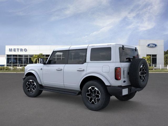 Oxford White 2025 Ford Bronco Outer Banks 2.3L EcoBoost I-4 4WD 10-Speed Automatic 2025 Ford Bronco Outer Banks in Oxford White vehicle highlights include, Bronco Outer Banks Advanced, 4D Sport Utility, 2.3L EcoBoost I-4, 10-Speed Automatic, 4WD, Oxford White, Smoked Truffle w/Black Onyx w/Heated Leather-Trimmed/Vinyl Bucket Seats, 18 Bright Machined Aluminum Wheels, 3.73 Axle Ratio, 4-Wheel Disc Brakes, 7 Speakers, ABS brakes, Air Conditioning, AM/FM radio: SiriusXM with 360L, AM/FM Stereo, Auto High-beam Headlights, Auto-dimming Rear-View mirror, Automatic temperature control, Brake assist, Compass, Connected Navigation, Delay-off headlights, Door Storage Bags, Driver door bin, Electronic Stability Control, Emergency communication system: 911 Assist, Equipment Group 312A Mid Package, Exterior Parking Camera Rear, Front anti-roll bar, Front Bucket Seats, Front Center Armrest, Front dual zone A/C, Front fog lights, Front wheel independent suspension, Fully automatic headlights, Hard Top Sound Deadening Headliner, Heated door mirrors, Heated front seats, Heated Leather-Trimmed/Vinyl Bucket Seats, Heated steering wheel, Illuminated entry, Integrated roll-over protection, Leather Shift Knob, Low tire pressure warning, Navigation system: Connected Navigation, Outside temperature display, Overhead console, Painted Hard Top, Panic alarm, Passenger door bin, Power door mirrors, Power driver seat, Power passenger seat, Power windows, Radio data system, Rear seat center armrest, Rear-Window Defroster & Washer, Remote keyless entry, Security system, SiriusXM w/360L, Speed control, Split folding rear seat, Steering wheel mounted audio controls, SYNC 4, Tachometer, Telescoping steering wheel, Tilt steering wheel, Traction control, Trip computer, Variably intermittent wipers, Voltmeter.