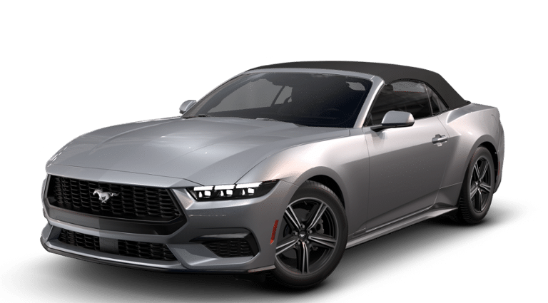 Iconic Silver Metallic 2025 Ford Mustang EcoBoost EcoBoost 2.3L I4 GTDi DOHC Turbocharged VCT RWD 10-Speed Automatic 20/28 City/Highway MPG 2025 Ford Mustang EcoBoost in Iconic Silver Metallic vehicle highlights include, ELIGIBLE FOR NEW AUTO LOAN INTEREST DEDUCTION, Mustang EcoBoost, 2D Convertible, EcoBoost 2.3L I4 GTDi DOHC Turbocharged VCT, 10-Speed Automatic, RWD, Iconic Silver Metallic, Black Onyx w/Cloth/Vinyl Heated Bucket Seats, 4-Wheel Disc Brakes, 9 Speakers, 9-Speaker Stereo System, ABS brakes, Air Conditioning, AM/FM radio: SiriusXM with 360L, AM/FM Stereo, Auto High-beam Headlights, Automatic temperature control, Brake assist, Bumpers: body-color, Cloth/Vinyl Heated Bucket Seats, Compass, Convertible roof lining, Delay-off headlights, Driver door bin, Electronic Stability Control, Emergency communication system: 911 Assist, Equipment Group 101A High Package, Exterior Parking Camera Rear, Four wheel independent suspension, Front anti-roll bar, Front Bucket Seats, Front Center Armrest, Front dual zone A/C, Fully automatic headlights, Glass rear window, Heated front seats, Illuminated entry, Leather Shift Knob, Low tire pressure warning, Outside temperature display, Overhead console, Panic alarm, Passenger door bin, Power convertible roof, Power door mirrors, Power driver seat, Power windows, Radio data system, Rain sensing wipers, Rear anti-roll bar, Rear Parking Sensors, Rear window defroster, Remote keyless entry, Security system, SiriusXM w/360L & HD Radio, Speed control, Speed-sensing steering, Speed-Sensitive Wipers, Sport steering wheel, Steering wheel mounted audio controls, SYNC 4, Tachometer, Telescoping steering wheel, Tilt steering wheel, Traction control, Trip computer, Variably intermittent wipers, Voltmeter, Wheels: 18 x 8 Machined-Face Aluminum.