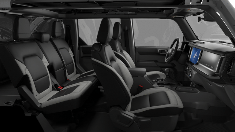 The Bronco's rugged good looks are complemented by a well-appointed interior that offers ample space and thoughtful amenities. Cloth bucket seats provide excellent support, while the split-folding rear seat allows you to easily accommodate your cargo. The Bronco also comes equipped with a host of driver-assistive technologies, including 911 Assist, Low Tire Pressure Warning, and Brake Assist, ensuring your safety and peace of mind on every journey.