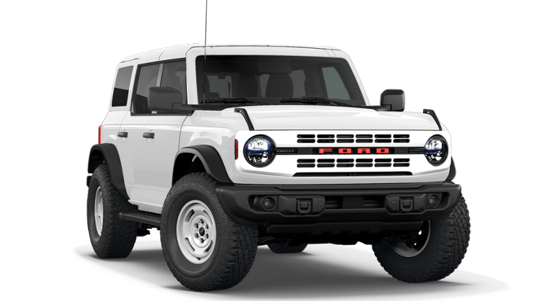 New Price! Recent Arrival! Oxford White 2026 Ford Bronco Heritage Edition 2.7L EcoBoost V6 4WD 10-Speed Automatic 2026 Ford Bronco Heritage Edition in Oxford White vehicle highlights include, ELIGIBLE FOR NEW AUTO LOAN INTEREST DEDUCTION, Bronco Heritage Edition, 4D Sport Utility, 2.7L EcoBoost V6, 10-Speed Automatic, 4WD, Oxford White, Navy Pier w/Plaid Cloth Front Heated Bucket Seats, 4-Wheel Disc Brakes, 7 Speakers, ABS brakes, Air Conditioning, AM/FM radio: SiriusXM with 360L, AM/FM Stereo, Auto High-beam Headlights, Auto-dimming Rear-View mirror, Automatic temperature control, Brake assist, Compass, Connected Navigation, Convertible HardTop, Convertible roof lining, Delay-off headlights, Driver door bin, Electronic Stability Control, Emergency communication system: 911 Assist, Equipment Group 662A Mid Package, Exterior Parking Camera Rear, Ford Connectivity Package (1-Year Included), Front anti-roll bar, Front Bucket Seats, Front Center Armrest, Front dual zone A/C, Front fog lights, Front wheel independent suspension, Fully automatic headlights, Glass rear window, Heated door mirrors, Heated front seats, Heated steering wheel, Illuminated entry, Integrated roll-over protection, Low tire pressure warning, Navigation system: Connected Navigation, Outside temperature display, Overhead console, Panic alarm, Passenger door bin, Plaid Cloth Front Heated Bucket Seats, Power door mirrors, Power windows, Radio data system, Rear window defroster, Rear window wiper, Remote keyless entry, Security system, SiriusXM with 360L, SiriusXM with 360L (3-Year Plan), Speed control, Split folding rear seat, Steering wheel mounted audio controls, SYNC 4, Tachometer, Telescoping steering wheel, Tilt steering wheel, Traction control, Trip computer, Upgraded Carpet Front and Rear Floor Mats, Variably intermittent wipers, Wheels: 17 Unique White.