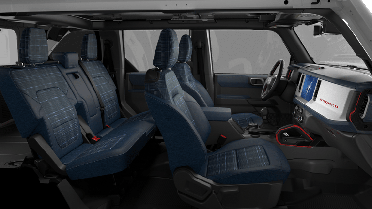 The Bronco Heritage Edition is more than just a rugged off-roader—it's a true head-turner with its distinctive styling and iconic design cues. The 17-inch Unique White wheels and Plaid Cloth Front Heated Bucket Seats add a touch of retro flair, while the Heated Steering Wheel and Auto High-Beam Headlights provide modern convenience.