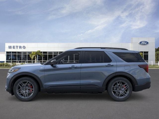 Recent Arrival! Vapor Blue Metallic 2026 Ford Explorer ST-Line 2.3L EcoBoost I-4 RWD 10-Speed Automatic 20/29 City/Highway MPG 2026 Ford Explorer ST-Line in Vapor Blue Metallic vehicle highlights include, FORD CONNECTIVITY -1YR TRIAL, Explorer ST-Line, 4D Sport Utility, 2.3L EcoBoost I-4, 10-Speed Automatic, RWD, Vapor Blue Metallic, Onyx w/Heated Unique Cloth Captain's Chairs, 10 Speakers, 110V/150W AC Power Outlet, 2nd Row Captain's Chairs w/E-Z Entry and Armrest, 2nd Row Heated Seats, 3rd row seats: bench, 4-Wheel Disc Brakes, ABS brakes, Air Conditioning, AM/FM radio: SiriusXM with 360L, Ambient Lighting, Apple CarPlay/Android Auto, Auto High-beam Headlights, Auto-Dimming Interior Rear-View Mirror, Automatic temperature control, BlueCruise (equipment + 1-Year + 90-Day Plan), BlueCruise Hardware, Brake assist, Bumpers: body-color, Compass, Delay-off headlights, Driver door bin, Electronic Stability Control, Emergency communication system: 911 Assist, Equipment Group 300A Standard Package, Exterior Parking Camera Rear, Four wheel independent suspension, Front and 2nd Rows Floor Liners with Carper Floor Mats, Front anti-roll bar, Front Bucket Seats, Front Center Armrest, Front dual zone A/C, Front fog lights, Fully automatic headlights, Garage door transmitter, Heated door mirrors, Heated front seats, Heated steering wheel, Heated Unique Cloth Captain's Chairs, Illuminated entry, Leather steering wheel, Low tire pressure warning, Manual-Folding Sideview Mirrors, Memory Driver's Seat, Navigation System, Outside temperature display, Overhead console, Panic alarm, Passenger door bin, Performance Brakes, Power door mirrors, Power driver seat, Power Liftgate, Power passenger seat, Power windows, Premium Package, Radio: B&O Sound System by Bang and Olufsen, Rain-Sensing Wipers (front Only), Rear air conditioning, Rear anti-roll bar, Rear window defroster, Rear window wiper, Red Painted Performance Front and Rear Brake Calipers, Remote keyless entry, Security system, Speed control, Speed-sensing steering, Speed-Sensitive Wipers, Split folding rear seat, Spoiler, ST-Line Street Pack, Steering wheel mounted audio controls, Tachometer, Telescoping steering wheel, Tilt steering wheel, Traction control, Trip computer, Variably intermittent wipers, Wheels: 21 Magnetite-Painted Aluminum.