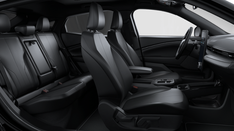 The Mustang Mach-E's striking exterior is complemented by a spacious, well-appointed interior. Sink into the comfortable ActiveX Bucket Seats and take in the panoramic views through the large windows. With ample cargo space and a split-folding rear seat, this electric SUV offers the versatility to accommodate your lifestyle.