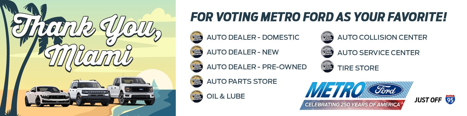 A few of the service duties efficiently performed by our technicians include new tire installation, brake pad replacement and engine diagnosis. After you complete and send our online service appointment form, one of our friendly department staff will be in contact with you at their very first convenience. Plenty of car owners around Miami bring us their automobiles in for routine servicing as well as for unexpected repairs which come about. We look forward to arranging your visit at the Metro Ford Inc Certified Service Department soon!