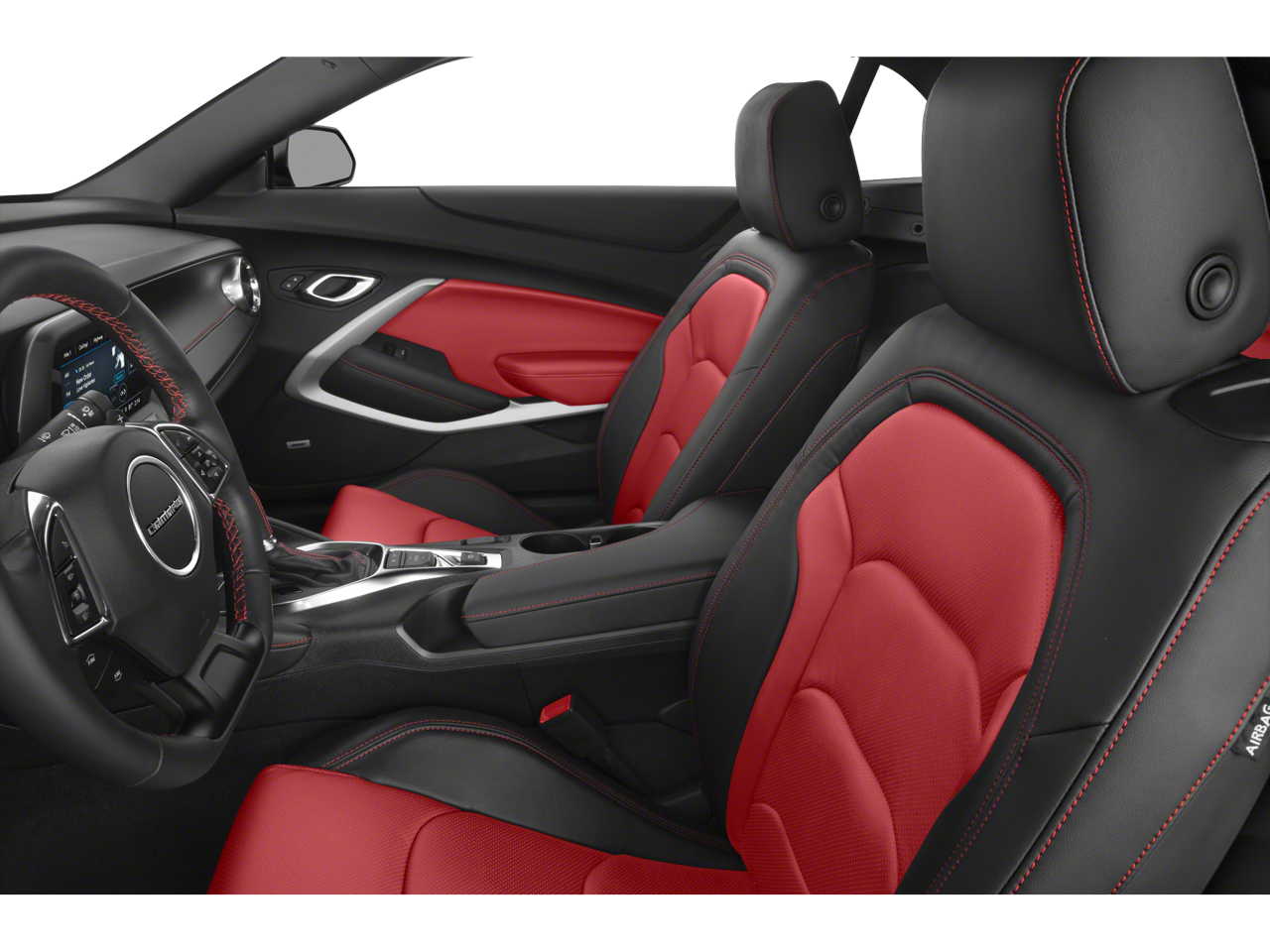 The Camaro's striking exterior is complemented by the Adrenaline Red interior, creating a bold and captivating presence on the road. With its 6-speed manual transmission and rear-wheel-drive configuration, this Camaro delivers an exhilarating driving experience that will leave you craving the open road.