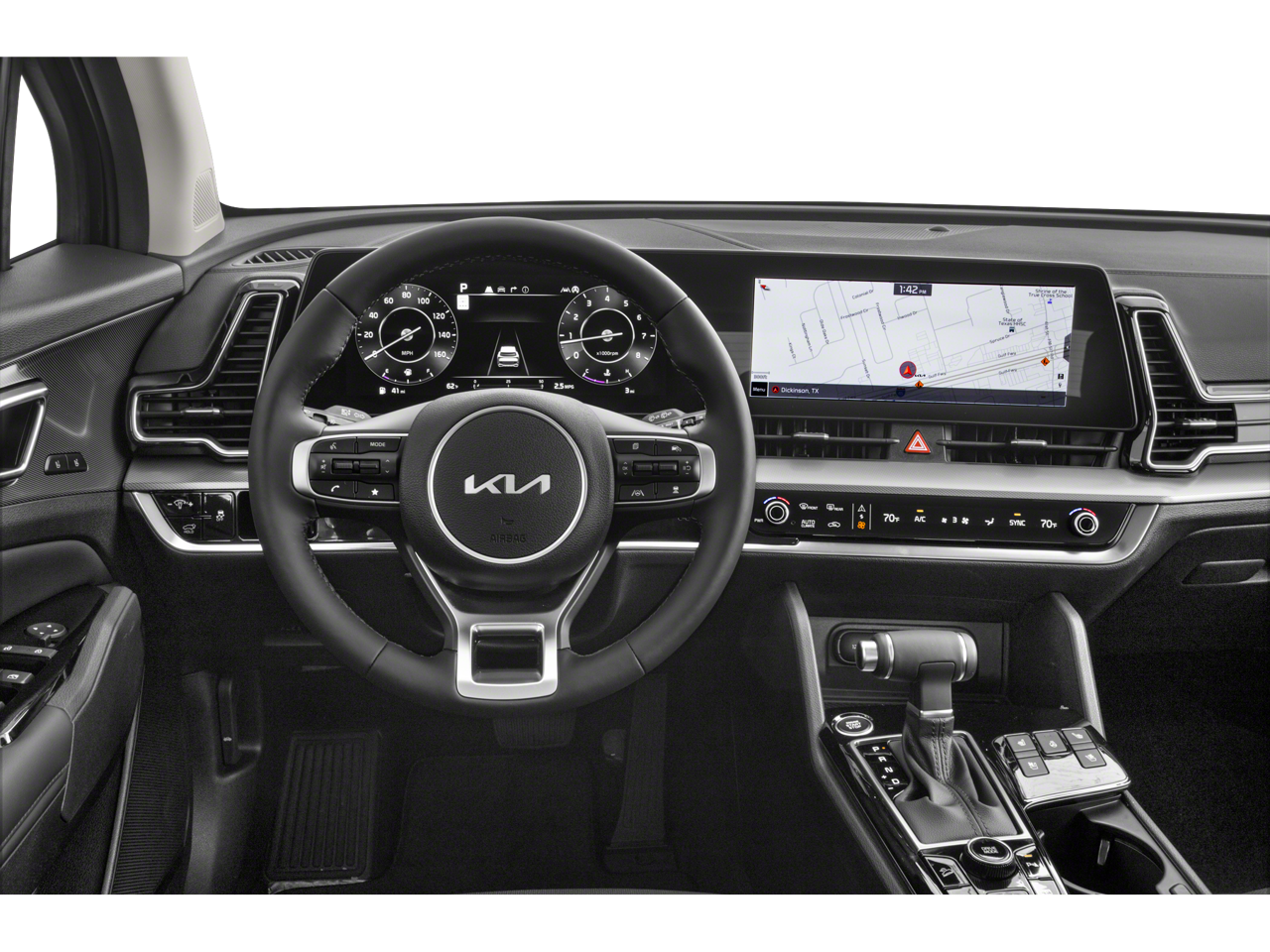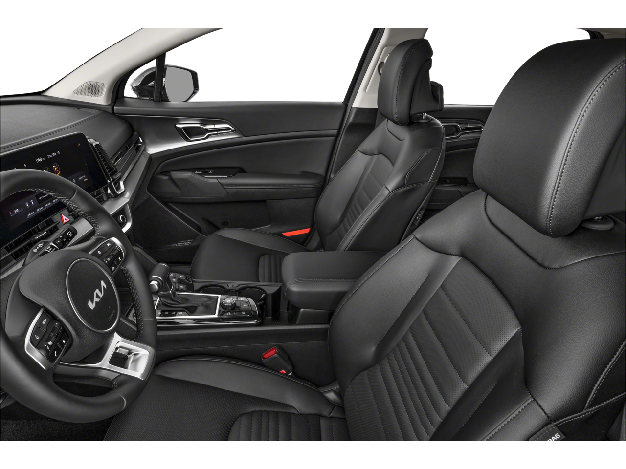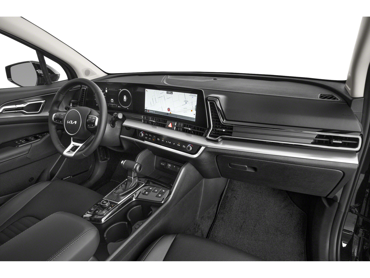 Slip behind the wheel and you'll be surrounded by the refined comfort of the Sportage's cabin. The leather-appointed, heated and ventilated front seats provide unparalleled support, while the expansive sunroof fills the interior with natural light. Seamlessly integrated technology, including the state-of-the-art navigation system and premium harman/kardon® audio, ensures you'll enjoy every mile.